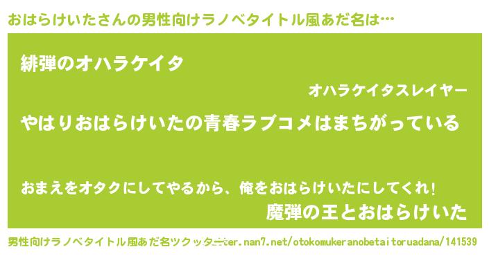 | 女子向けラノベタイトル風あだ名 | 『おはらけいたの雑貨屋さん』 |