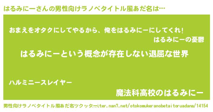 | 伝説のあだ名 | 『古より伝わる吟遊詩人はるみにー』 |