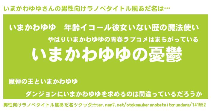 | 胡散臭い通販商品みたいなあだ名 | 『モテモテ間違いなし霊験あらたかなお札…その名も「いまかわゆゆ」』 |
