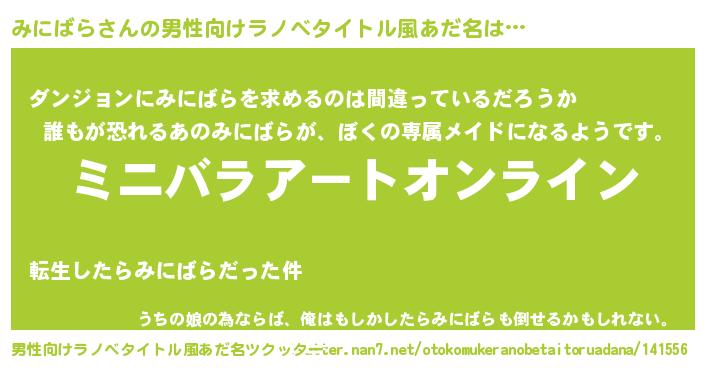 | 胡散臭い通販商品みたいなあだ名 | 『億万長者になれるブレスレット…その名も「みにばら」』 |