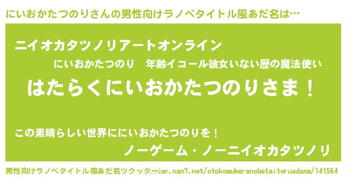 | 胡散臭い通販商品みたいなあだ名 | 『必ず成功するブレスレット…その名も「にいおかたつのり」』 |