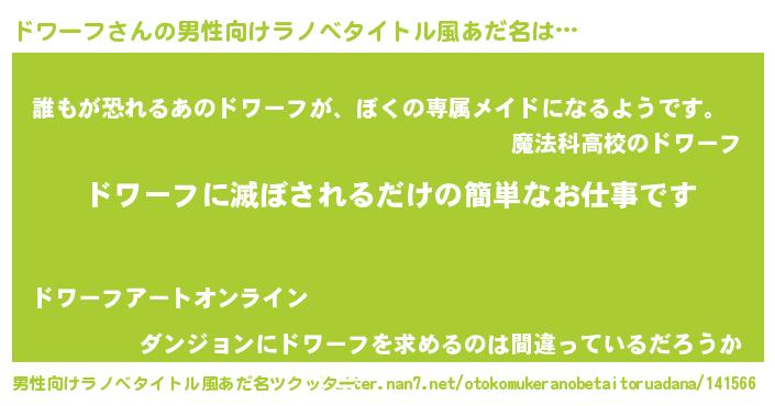 | ヘコむあだ名 | 『ドワーフ(遠い目)』『ドワお』 |