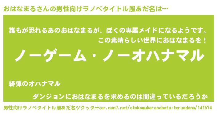 | 女子向けラノベタイトル風あだ名 | 『死神おはなまるの再婚』 |