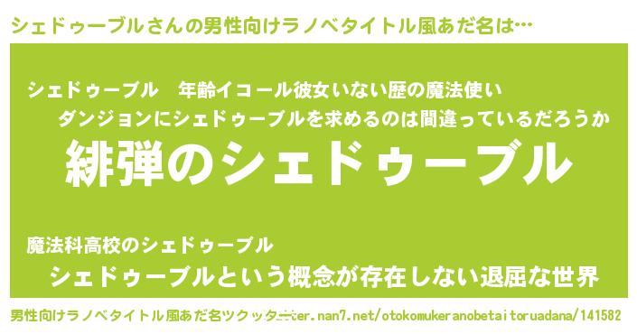 | 女子向けラノベタイトル風あだ名 | 『シンデレラシェドゥーブル家の靴箱館』 |