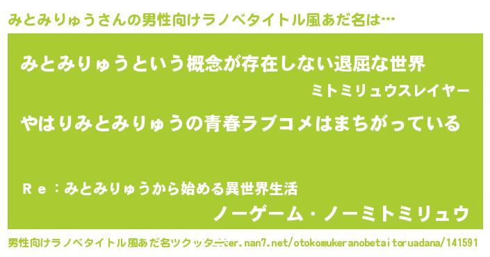 みとみりゅうさんの男性向けラノベタイトル風あだ名をツクッター!