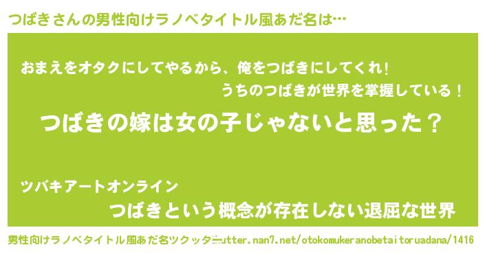 | 女子向けラノベタイトル風あだ名 | 『つばき様がみてる』『つばきの契約王妃』 |