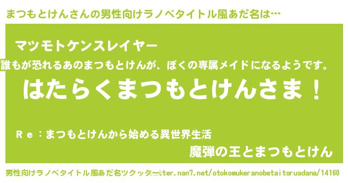 | ヘコむあだ名 | 『まつもとけん(苦笑)』『まつ太郎』 |
