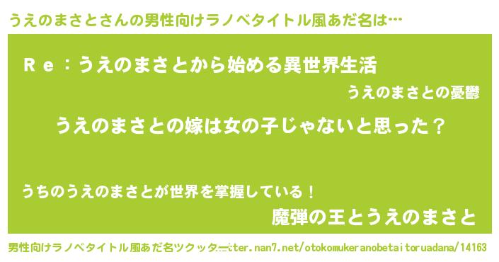 | 女子向けラノベタイトル風あだ名 | 『うえのまさと様がみてる』 |