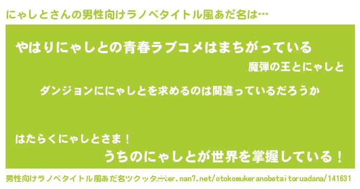 | 女子向けラノベタイトル風あだ名 | 『にゃしとは平凡を望む』 |
