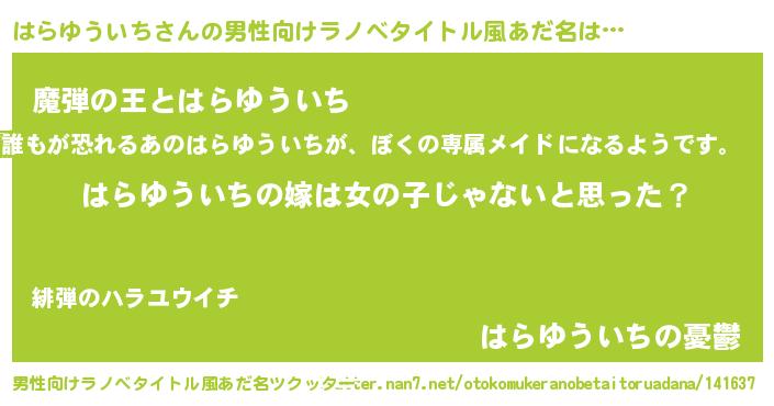 | 女子向けラノベタイトル風あだ名 | 『はらゆういち様がみてる』 |
