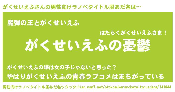 | 女子向けラノベタイトル風あだ名 | 『(仮)がくせいえふのやんごとなき事情』 |