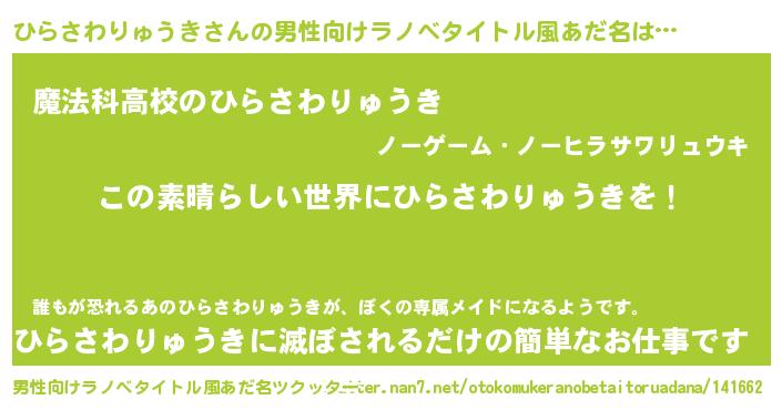 | 意味不明あだ名 | 『住所不定無職ひらさわりゅうき(5歳)』 |