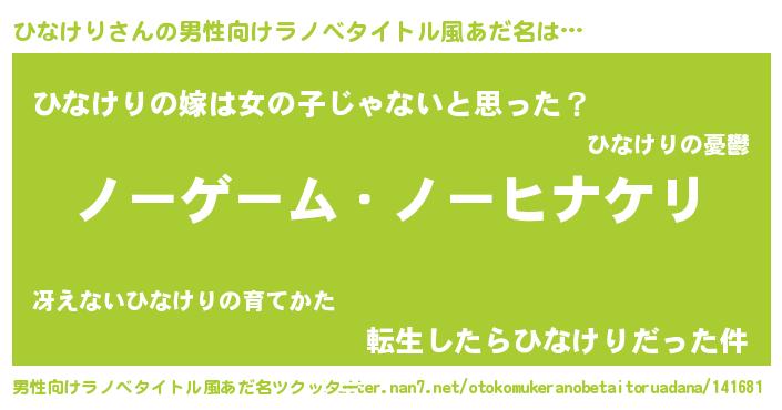 | 女子向けラノベタイトル風あだ名 | 『ひなけり恋絵巻』 |