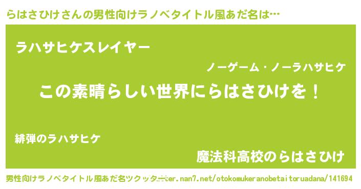 | ヒーロー風カッコイイあだ名 | 『仮面ラハダー』『超時空戦士ラハサヒケ』 |