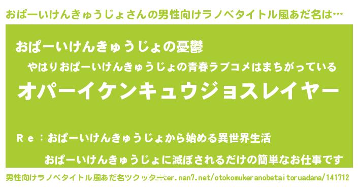 | ヒーロー風カッコイイあだ名 | 『スーパーオパーイケンキュウジョ』 |