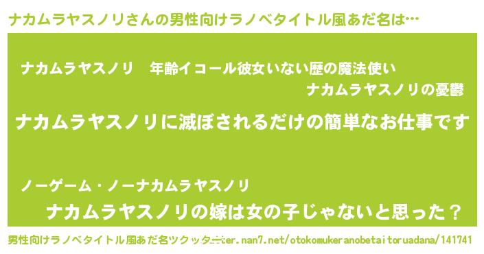 | 女子向けラノベタイトル風あだ名 | 『横柄ナカムラヤスノリと宰相陛下』 |