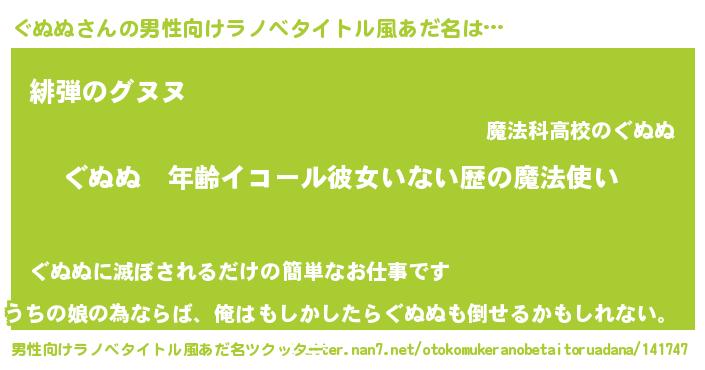 | ヒーロー風カッコイイあだ名 | 『ウルトラぐぬぬマン』『ネオグヌヌ』 |