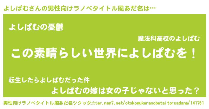 | 胡散臭い通販商品みたいなあだ名 | 『あなたにだけ特別に提供する限定10本のレアな日本酒…その名も「よしぱむ」』 |