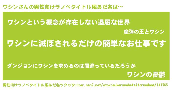 | 胡散臭い通販商品みたいなあだ名 | 『前代未聞の健康食品…その名も「ワシン」』 |