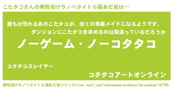 | ヘコむあだ名 | 『こたタコ(遠い目)』『こたにー』 |