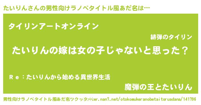 | 女子向けラノベタイトル風あだ名 | 『たいりん様がみてる』『闇のたいりん』 |