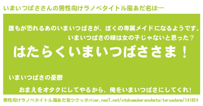 | ヘコむあだ名 | 『いまいつばさ(小並感)』『いまお』 |
