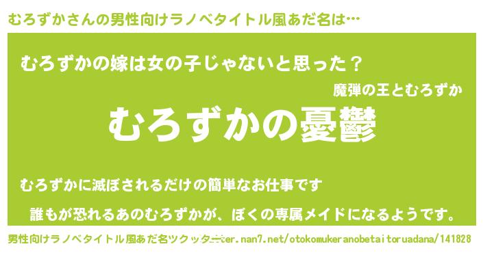 | 女子向けラノベタイトル風あだ名 | 『(仮)むろずかのやんごとなき事情』 |