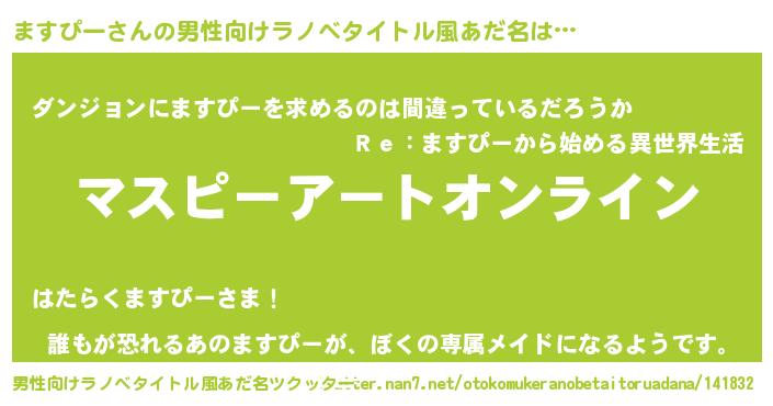 | 女子向けラノベタイトル風あだ名 | 『誰かこのますぴーを説明してください! ~契約から始まるウェディング~』 |
