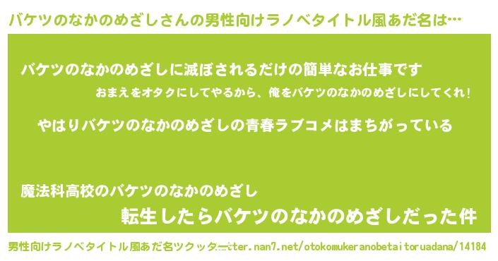 | ファンタジー風あだ名 | 『エターナルバケツノナカノメザシー』 |