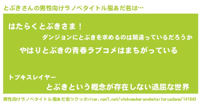 | 女子向けラノベタイトル風あだ名 | 『とぶきの雑貨屋さん』 |