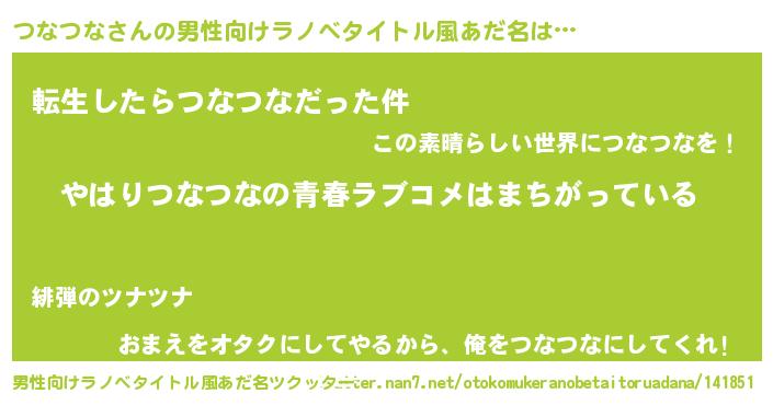 | 女子向けラノベタイトル風あだ名 | 『つなつな伯爵の花嫁』 |