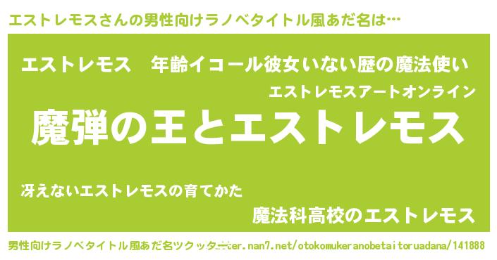 | 意味不明あだ名 | 『住所不定無職エストレモス(47歳)』 |