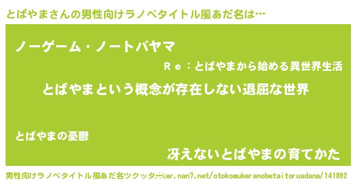 | 意味不明あだ名 | 『永久保存とばやま』『自称とばやま』 |