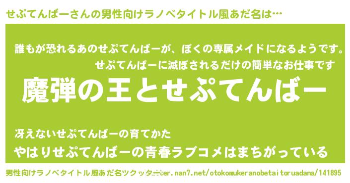 | 女子向けラノベタイトル風あだ名 | 『せぷてんばーが死なない童話 林檎のせぷてんばーの診療簿』 |