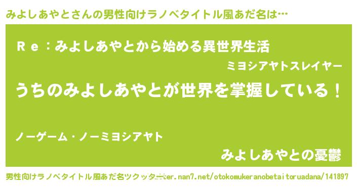 | 意味不明あだ名 | 『自称みよしあやと』 |