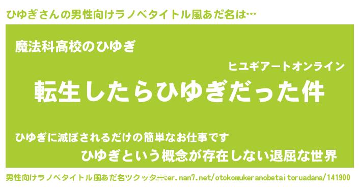| 女子向けラノベタイトル風あだ名 | 『ひゆぎの玉の輿計画!』 |
