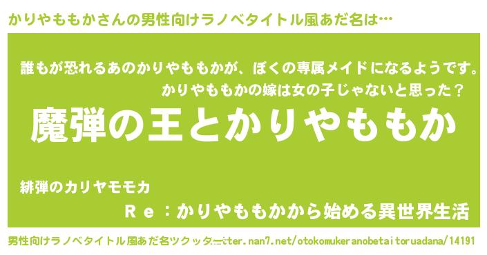 | ヘコむあだ名 | 『かりやももか(笑)』『かりっぺ』 |
