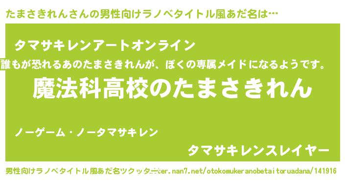 | 意味不明あだ名 | 『自称たまさきれん』 |