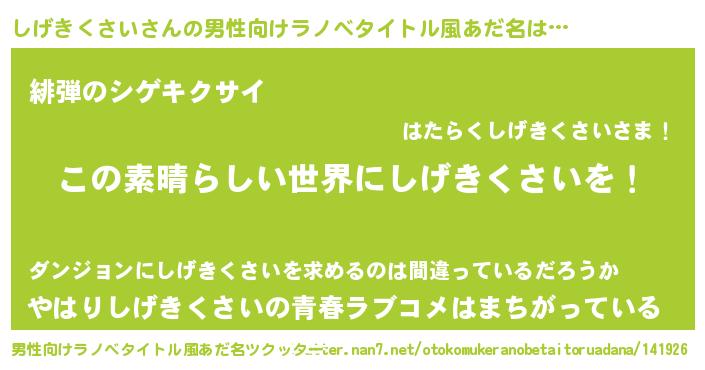 | 意味不明あだ名 | 『住所不定無職しげきくさい(68歳)』 |