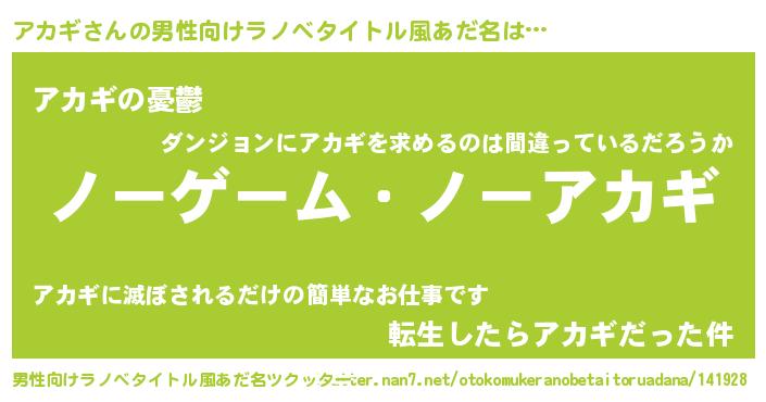 | 女子向けラノベタイトル風あだ名 | 『アカギ恋絵巻』『アカギ姫と円卓の騎士』 |