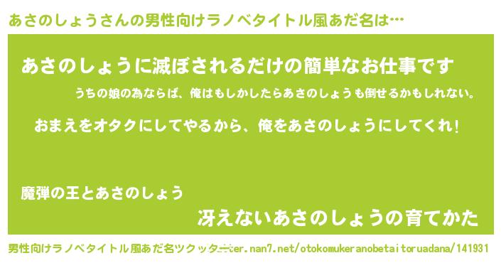 | 胡散臭い通販商品みたいなあだ名 | 『100人中100人が認めたマグネット磁石…その名も「あさのしょう」』 |