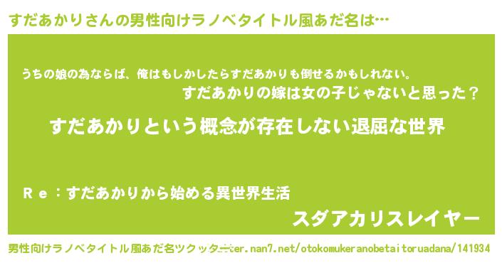 | 胡散臭い通販商品みたいなあだ名 | 『絶対に幸福をもたらす健康食品…その名も「すだあかり」』 |