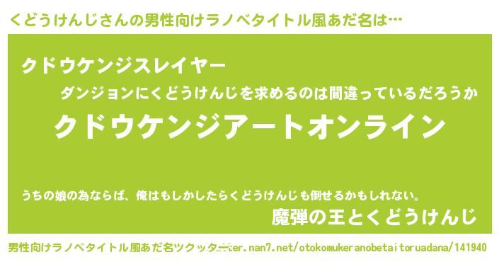 | 胡散臭い通販商品みたいなあだ名 | 『億万長者になれる霊験あらたかなお札…その名も「くどうけんじ」』 |
