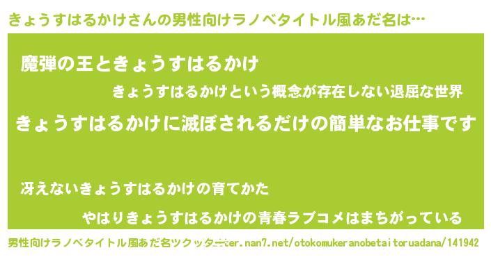 | 意味不明あだ名 | 『住所不定無職きょうすはるかけ(11歳)』 |