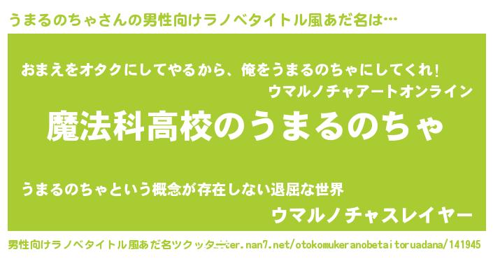 | 胡散臭い通販商品みたいなあだ名 | 『ガンによく効く高麗人参…その名も「うまるのちゃ」』 |