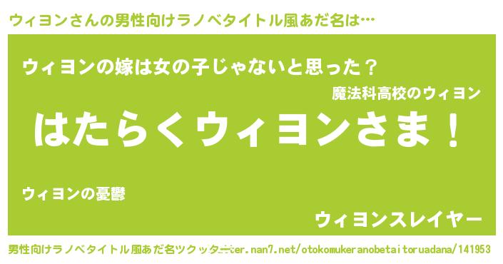 | 意味不明あだ名 | 『とにかく怪しいウィヨン』 |