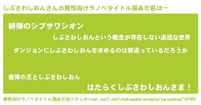 | 女子向けラノベタイトル風あだ名 | 『しぶさわしおんは平凡を望む』 |