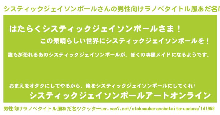 | 女子向けラノベタイトル風あだ名 | 『異世界でカフェシスティックジェイソンポールを開店しました。』 |