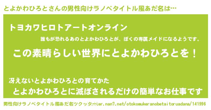 | ヘコむあだ名 | 『とよにゅー』『とよかわひろと(小並感)』 |