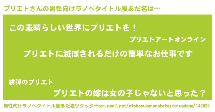 | 胡散臭い通販商品みたいなあだ名 | 『あなたにだけ特別に提供する100年もののヴィンテージワイン…その名も「プリエト」』 |
